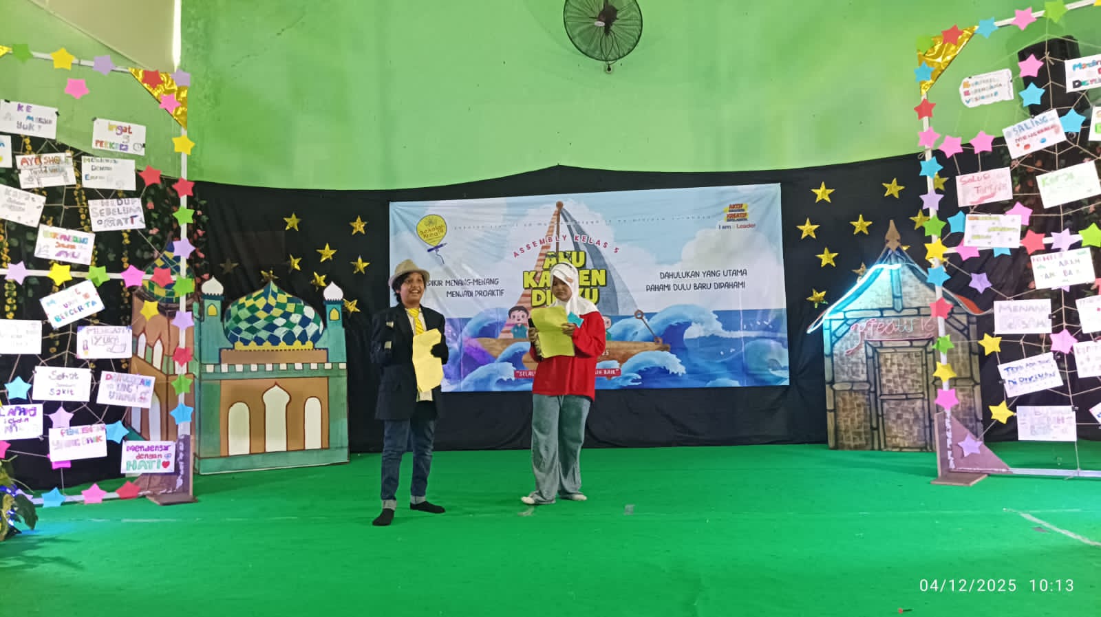 Tagar.co — Setelah penampilan Assembly Learning kelas II selesai, aula lantai 3 Sekolah Kreatif SD Muhammadiyah 16 Surabaya kembali bergemuruh oleh sorak dan tepuk tangan ketika siswa kelas V tampil membawakan drama musikal bertema “Aku Kapten Diriku”. Pertunjukan inspiratif ini menjadi puncak rangkaian Assembly Learning pada Kamis (4/12/2025).