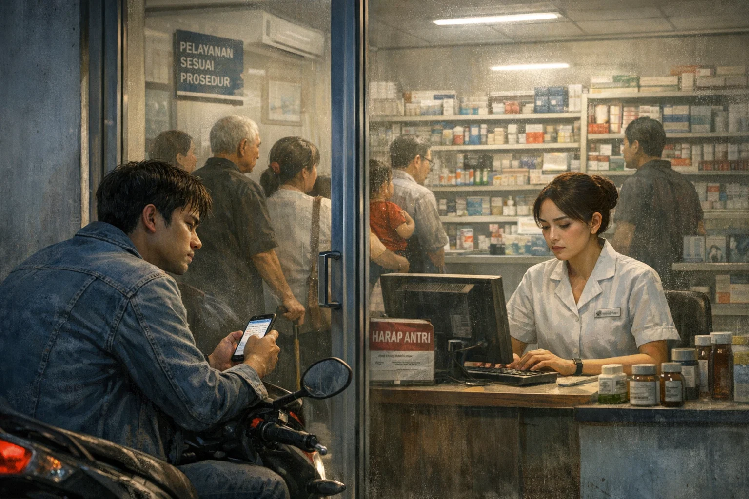 Setiap kali aku melewati apotek itu, mataku otomatis mencari antrean. Kadang panjang, kadang kosong. Kadang ada yang keluar sambil menggerutu, kadang ada yang diam pasrah.