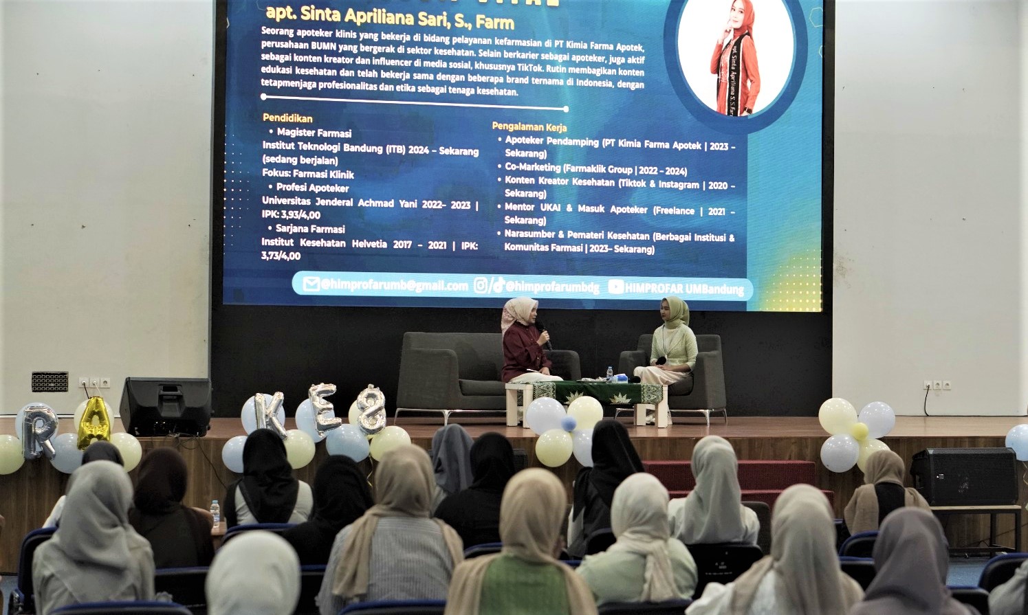 Seminar bertajuk “Pharmacy Practice in the 21st Century: Challenges, Innovations, and Future Outlook” itu terselenggara dalam memperingati Dies Natalis ke-8 Himpunan Mahasiswa Farmasi (Himprofar) Universitas Muhammadiyah (UM) Bandung. Sinta menjelaskan, apoteker kini mendapat tuntutan untuk lebih aktif dalam tim medis. Mereka harus memantau terapi, memberi edukasi, bahkan terlibat dalam pengambilan keputusan klinis.