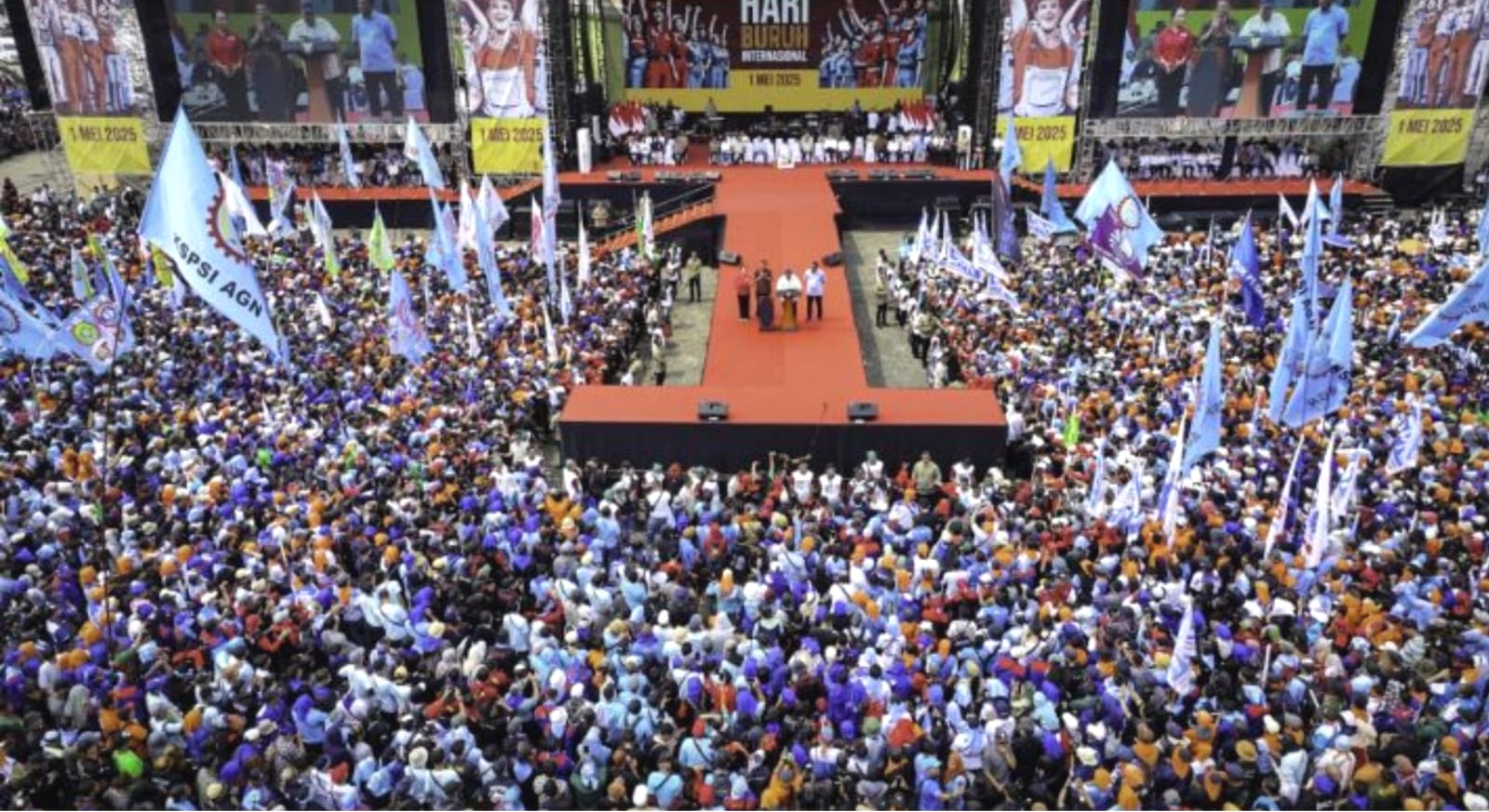 Di Hari Buruh, Prabowo bersumpah “demi Allah” akan selalu membela kaum buruh. Pidatonya memadukan janji heroik, wacana ekonomi rakyat, dan harapan baru—atau sekadar retorika?