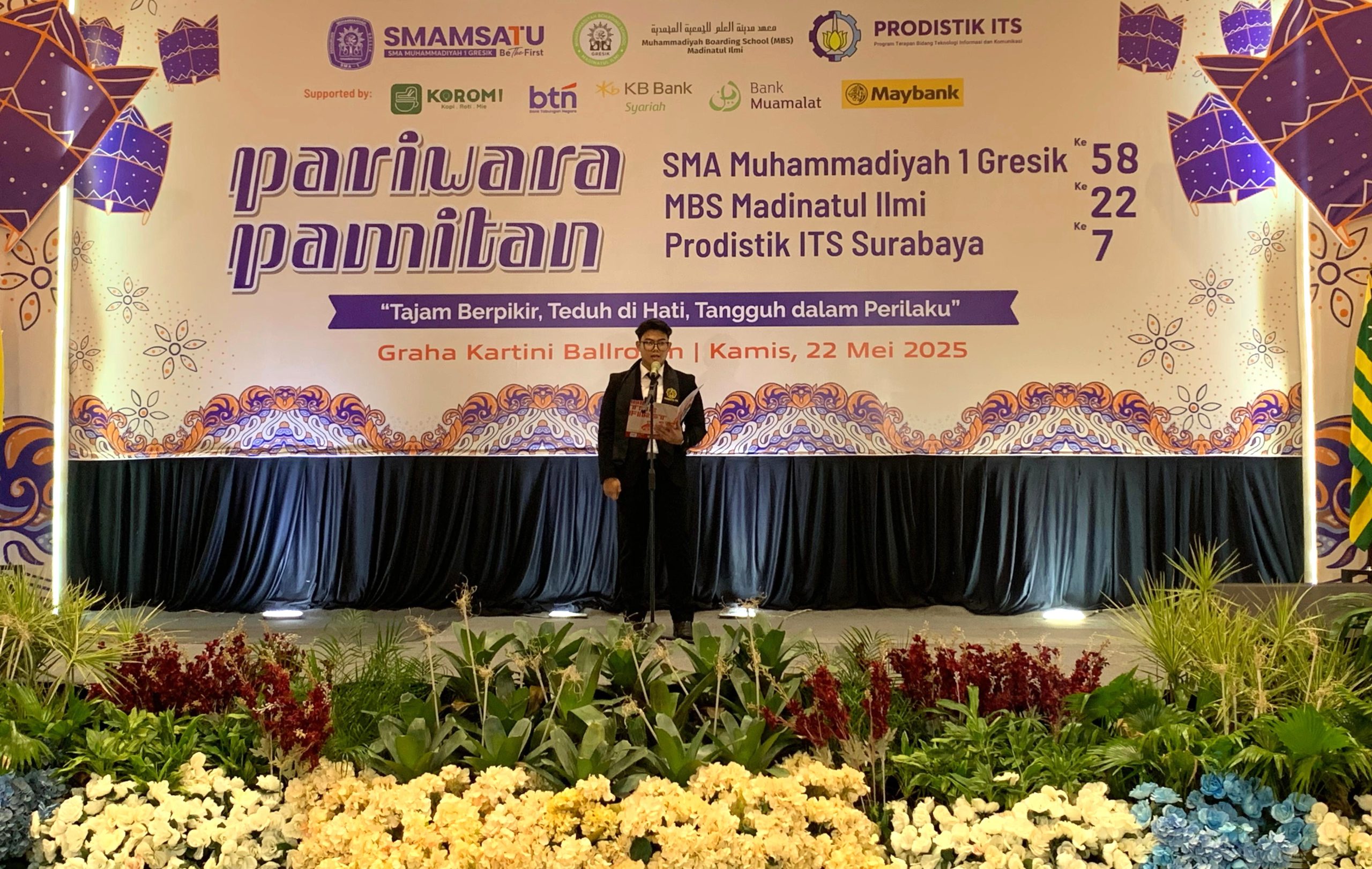 Tagar.co – Pagi itu, Kamis, 22 Mei 2025, suasana di Graha Kartini Ballroom, Gresik, semakin hangat seiring dengan pengumuman kelulusan 100 persen 134 siswa Saintek dan 164 siswa Soshum. Perasaan haru dan bangga menyelimuti acara kelulusan siswa SMA Muhammadiyah 1 (Smamsatu) Gresik Angkatan 58, yang menjadi bukti kerja keras selama tiga tahun penuh.