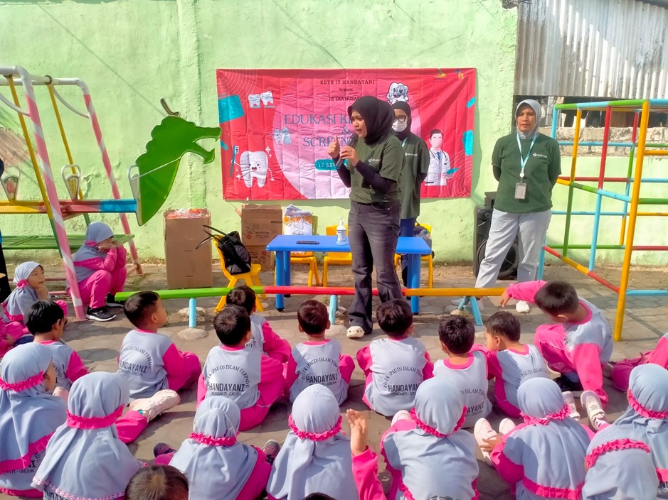 136 siswa KB-TK IT Handayani Menganti mengikuti puncak tema Mulut Ciptaan Allah dengan penuh keceriaan. Mereka senam bersama, belajar enam langkah cuci tangan sambil bernyanyi, gosok gigi dipandu drg. Allya Rania Diva, hingga periksa gigi gratis dari RS Eka Husada.