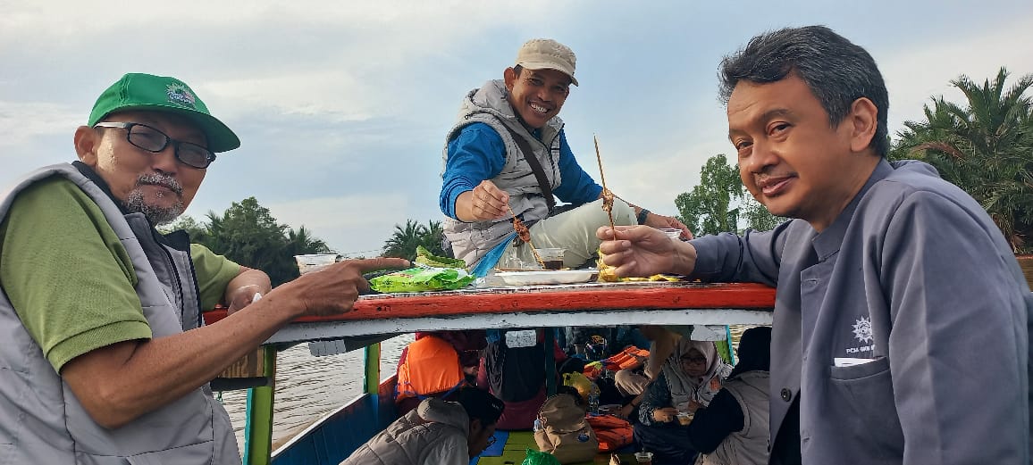 Menyambut mentari di Sungai Martapura, rombongan PCM GKB Gresik susuri denyut nadi Kota Seribu Sungai. Di antaranya menikmati kehangatan Soto Banjar di Pasar Terapung Lok Baintan.
