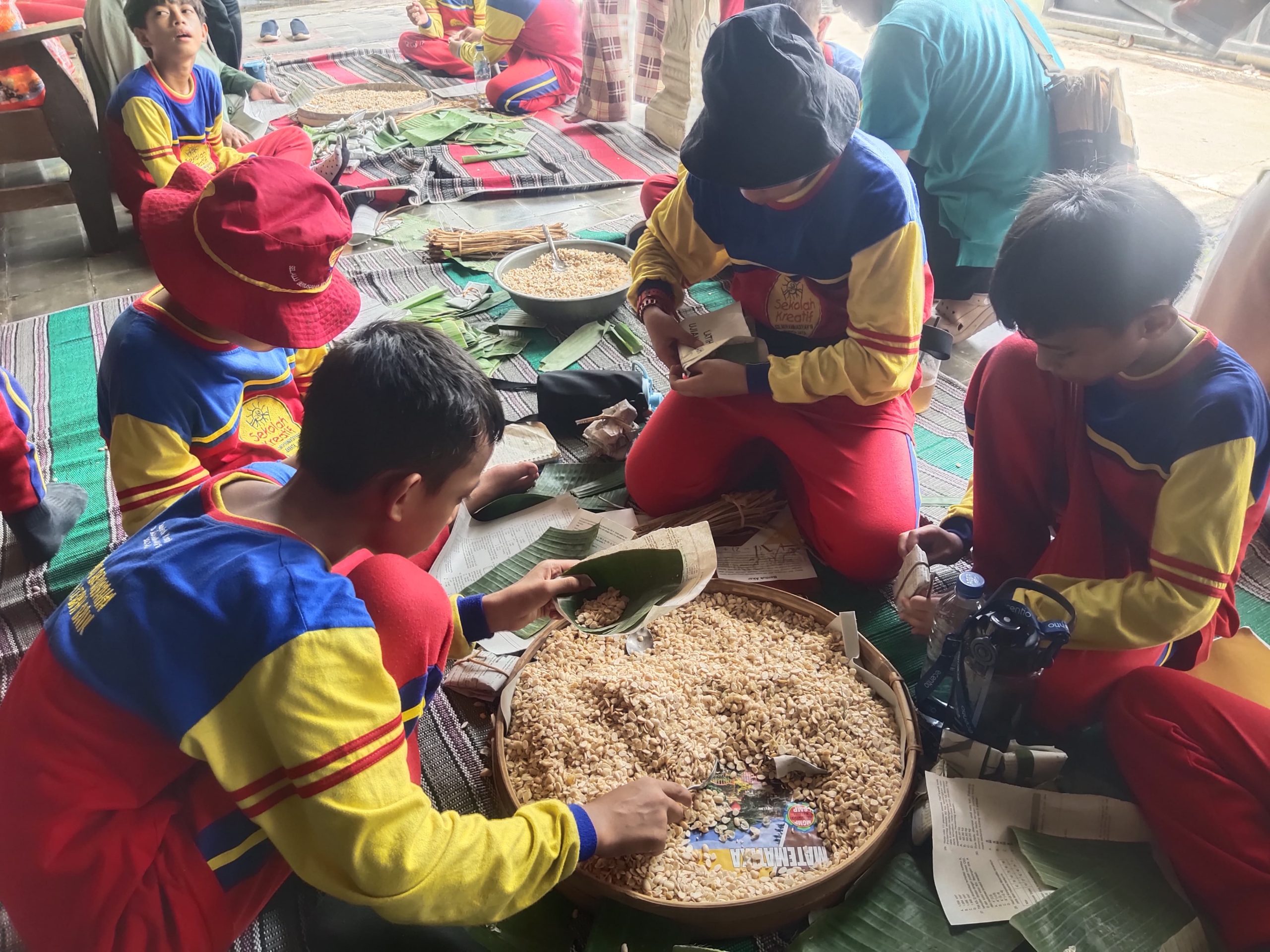 Aroma kedelai yang direbus menyambut kedatangan para siswa, mengundang rasa penasaran akan proses di balik lauk sederhana yang akrab di meja makan mereka.