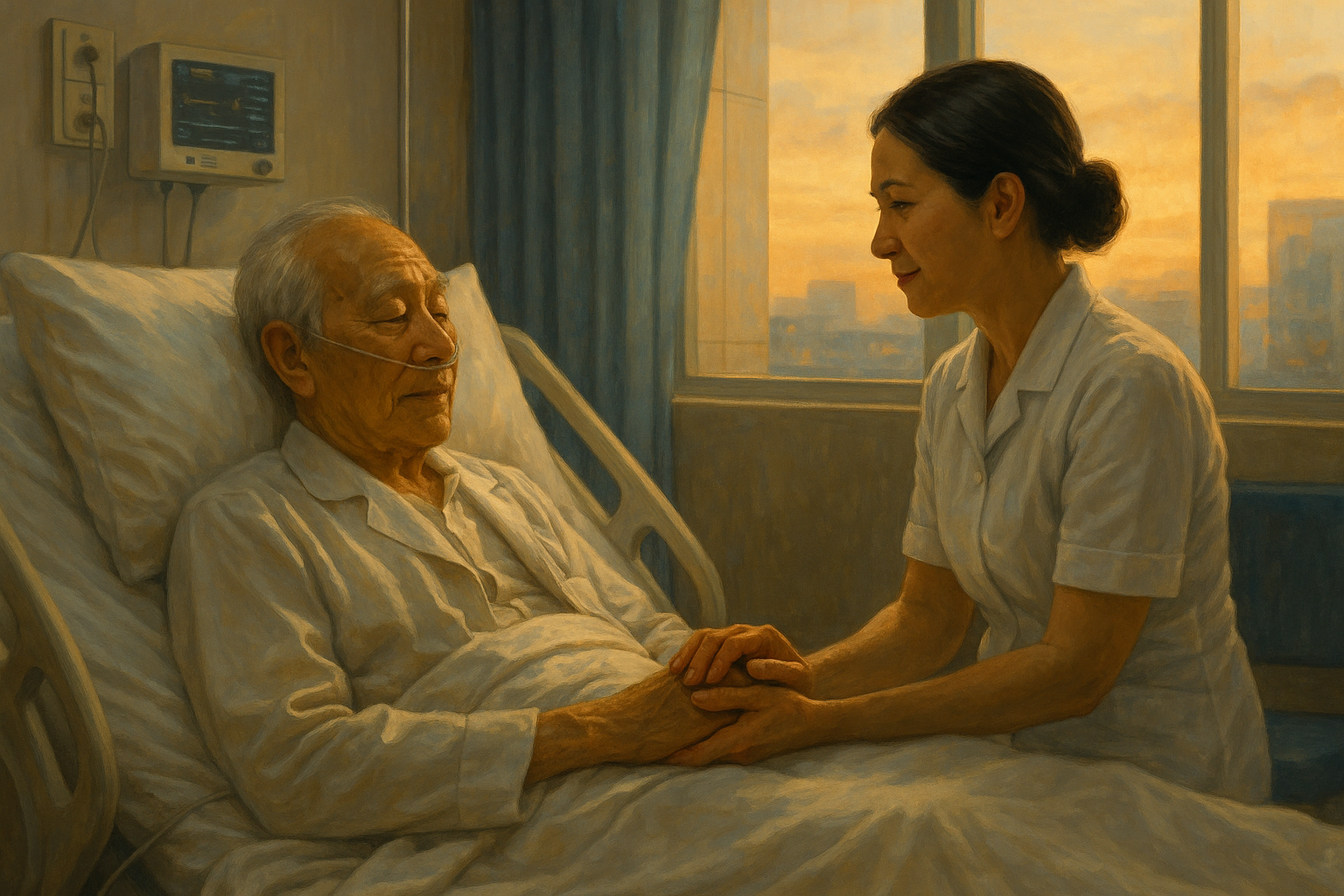 Tahun-tahun berlalu. Rambut Darma memutih, langkahnya tak lagi tegap. Hingga suatu sore, di ambang senja, ia terbaring di ranjang pasien ruang rawat tempat ia dulu bekerja. Sinta, yang kini menjadi kepala perawat, duduk di sampingnya sambil menggenggam tangan tua itu.