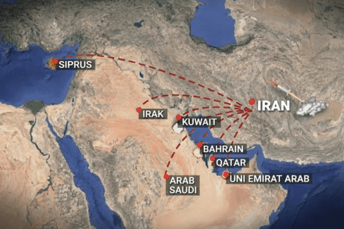 Ilustrasi serangan balasan Iran ke pangkalan militer Amerika Serika yang ada di sejumlah negara Timur Tengah (Ilustrasi YouTube Kompas)