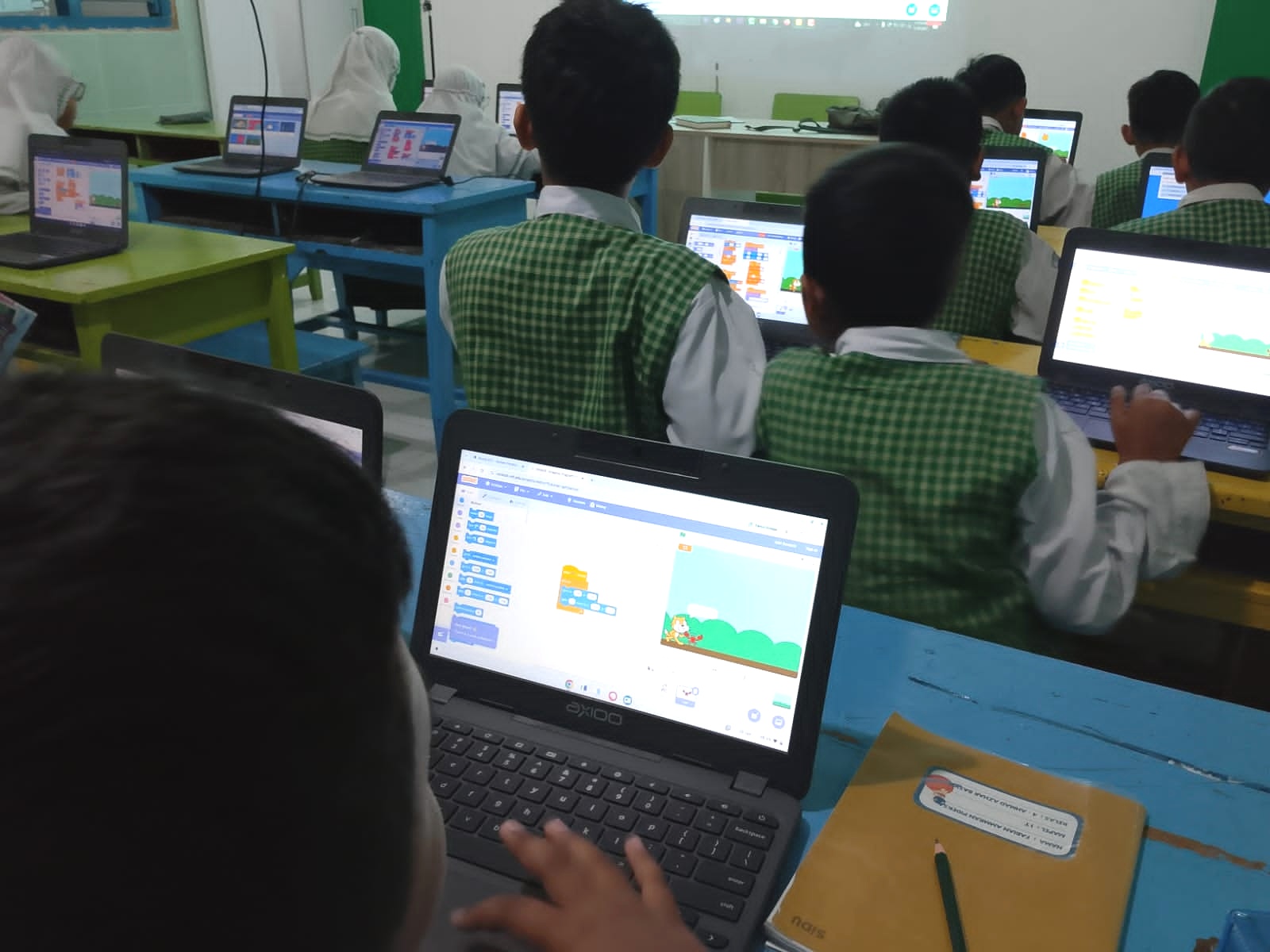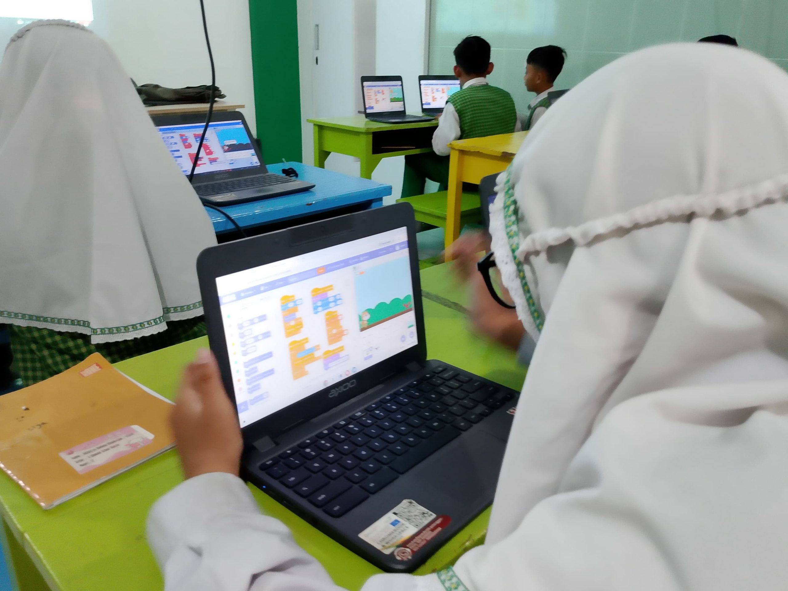 Lewat game dinosaurus berbasis block coding, siswa SD Muhammadiyah 1 Kebomas belajar menyusun logika pemrograman di balik layar Chromebook—bermain, mencoba, salah, lalu memahami koding dengan cara yang menyenangkan dan bermakna.