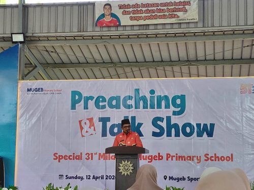 Tagar.co — Suasana hangat menyelimuti Mugeb Sport Center pada Ahad pagi, 12 April 2026. Puluhan wajah penuh senyum berkumpul dalam acara Preaching & Talk Show, bagian dari rangkaian perayaan Milad Ke-31 SD Muhammadiyah 1 GKB (Mugeb Primary School).