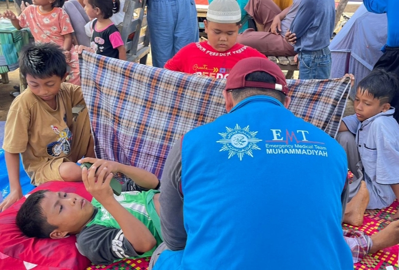 EMT Muhammadiyah Jawa Tengah bersama Relawan Muhammadiyah Jawa Tengah menegaskan komitmennya untuk tetap hadir mendampingi masyarakat terdampak bencana. Layanan kesehatan yang diberikan tidak hanya difokuskan pada penanganan penyakit akibat banjir, tetapi juga menyesuaikan kebutuhan riil warga di lapangan. (#)