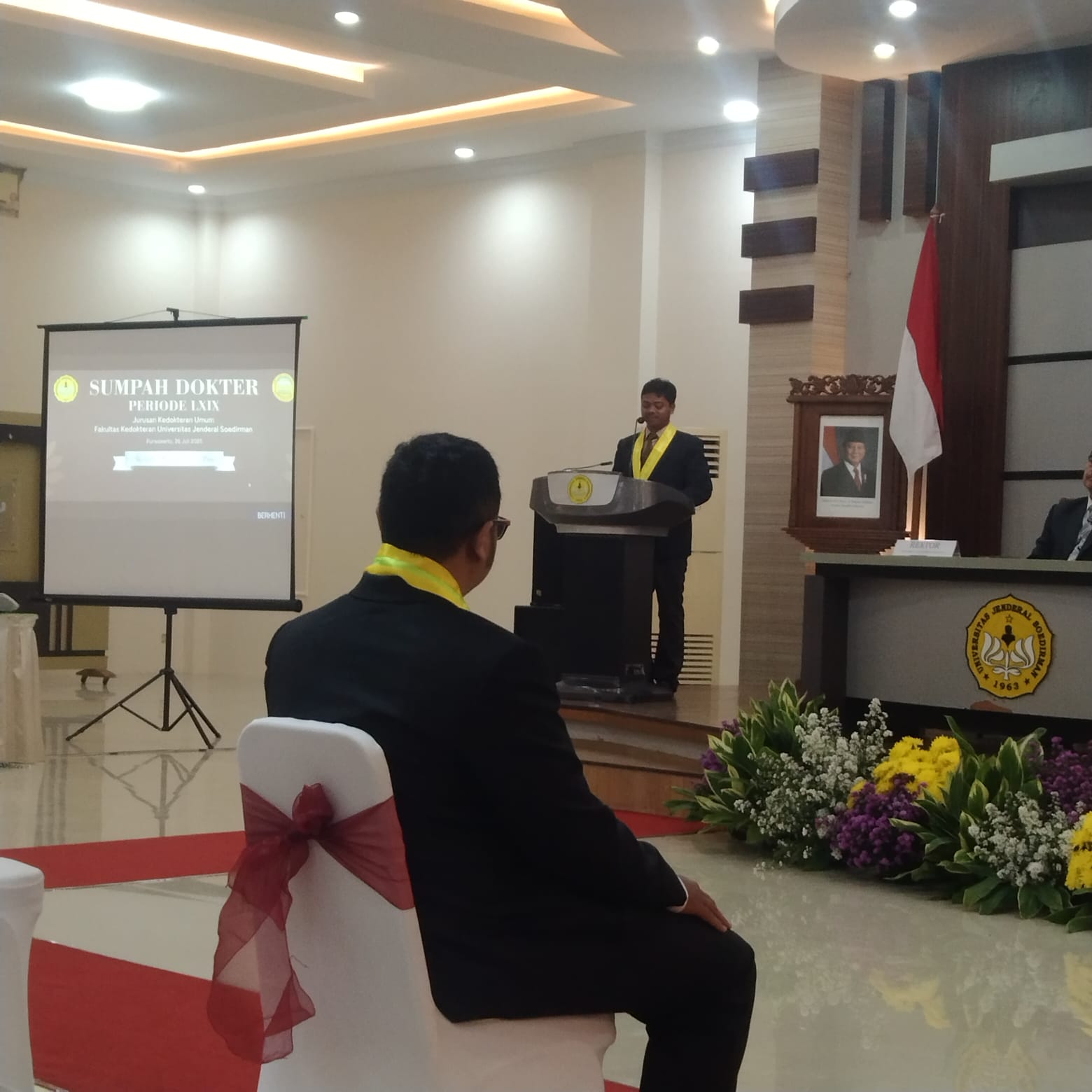 Tagar.co – Aula Dekanat Fakultas Kedokteran Universitas Jenderal Soedirman (Unsoed) tak sekadar menjadi ruang seremoni pagi itu. Ia menjelma menjadi ruang sakral tempat harapan, perjuangan, dan air mata menyatu dalam satu peristiwa: pengambilan Sumpah Dokter Periode LXIX