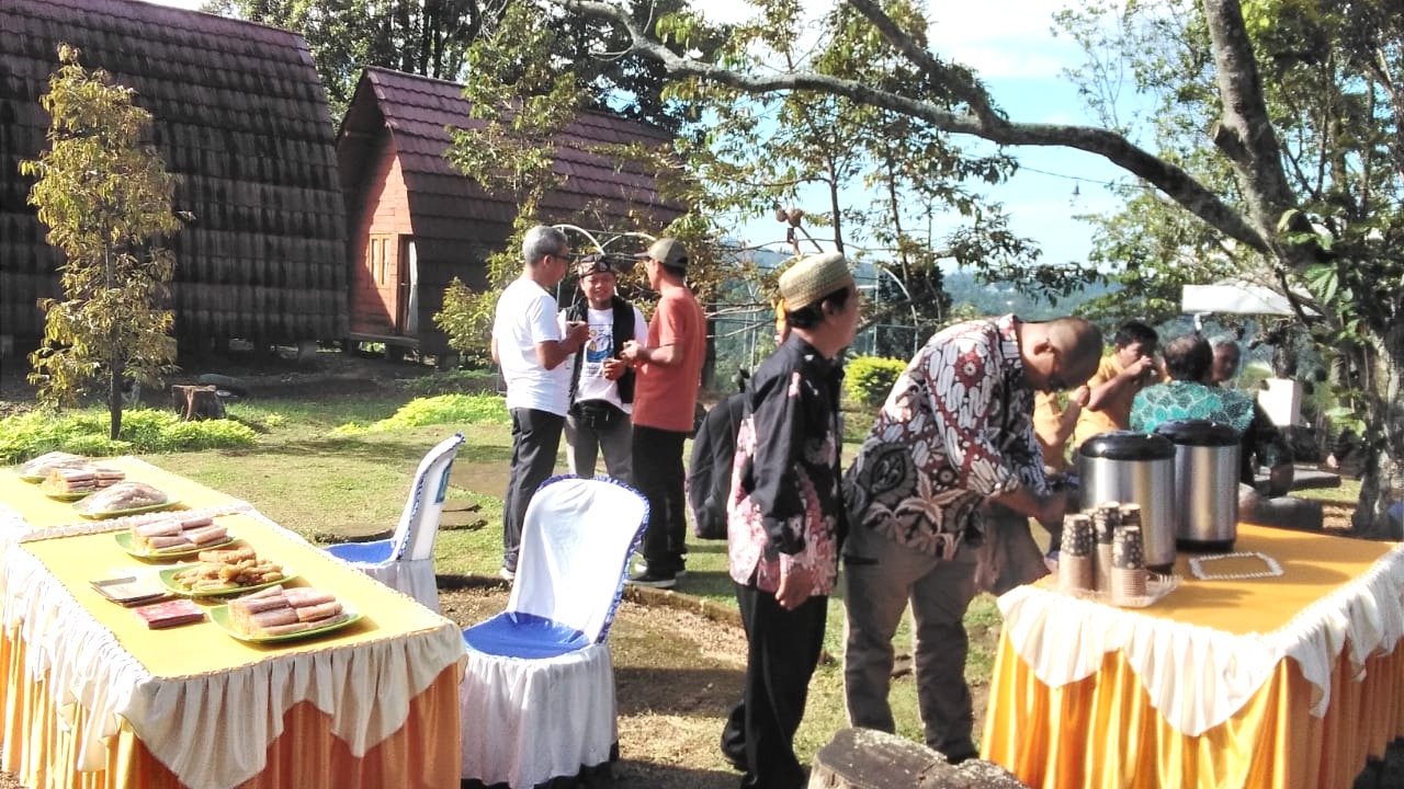 Usai bersih diri, aneka kue plus kopi dan teh sudah tersedia di sekitar aula terbuka Agropolis. Beberapa peserta yang datang lebih awal bersama-sama menikmati coffee morning.