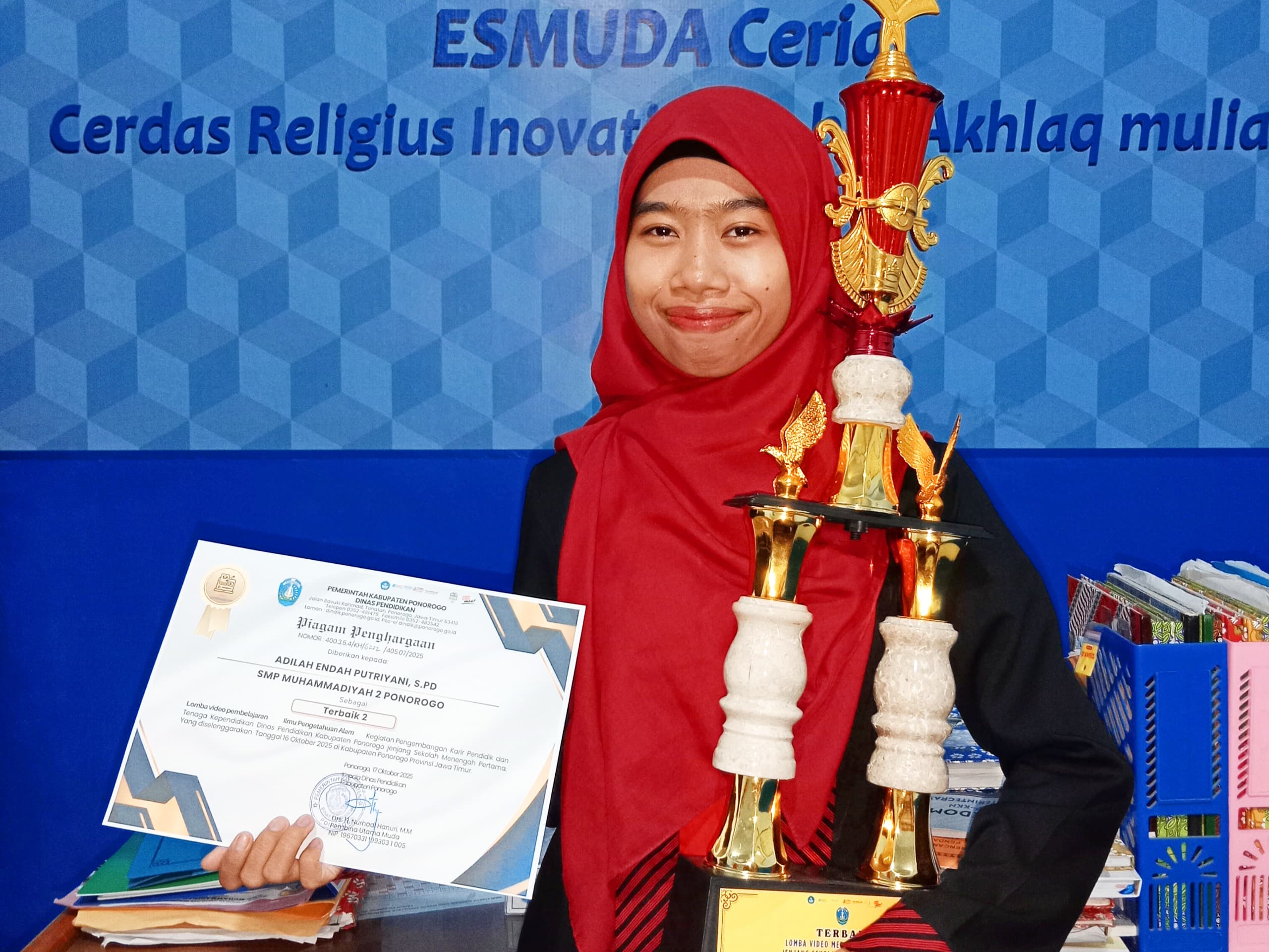 Salah satu gurunya, Adilah Endah Putriani, S.Pd., berhasil meraih Juara 2 Lomba Video Media Pembelajaran (LVMP) Tingkat SMP se-Kabupaten Ponorogo Tahun 2025 berkat kreativitasnya mengemas materi tekanan zat padat dalam format video yang menarik dan mudah dipahami.
