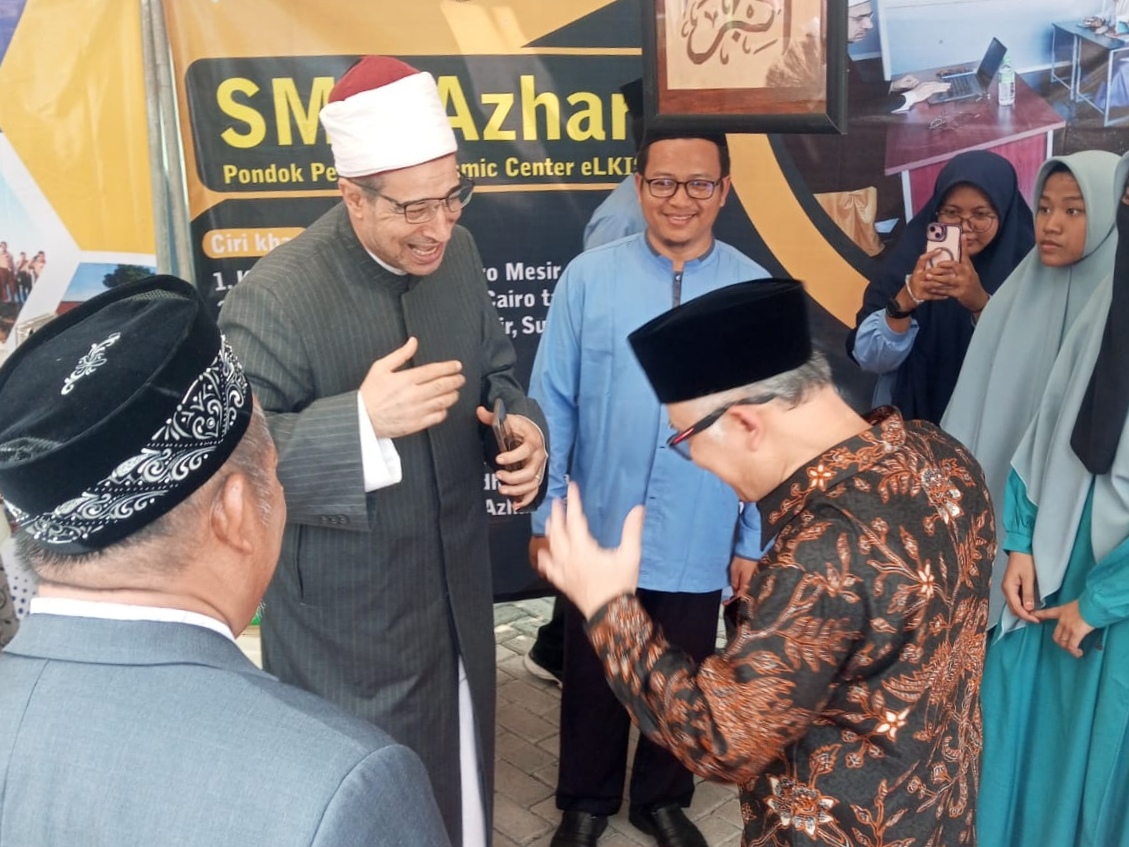 Prof. Atip Latipulhayat (kanan) saat tiba di PPIC eLKISI, didampingi Pengasuh PPIC eLKISI K.H, Fathur Rohman dan syekh dari Al-Azhar Mesir. (kiri) Tagar.co/Muhammad Hidayatulloh)