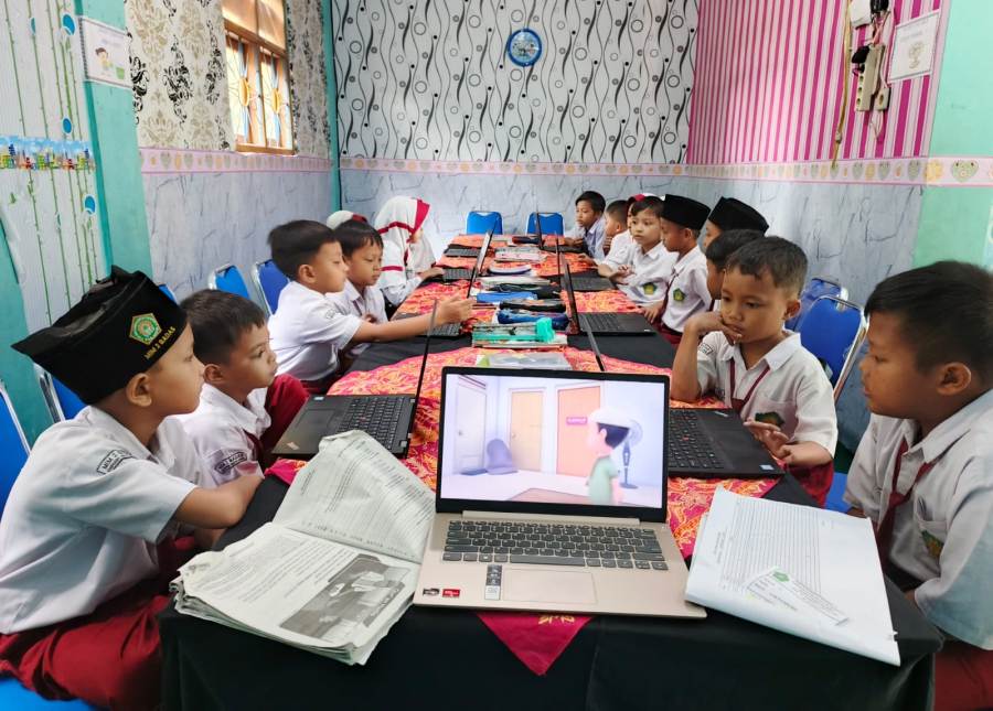 Tagar,co – Anak-anak itu suka sekali ketika giliran belajar Laboratorium Digital. Ini fasilitas baru MI Muhammadiyah 2 Badas Kabupaten Kediri. Dibangun pada November 2024 lalu.