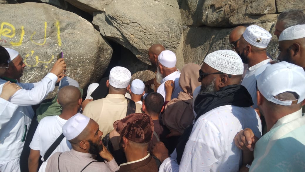 Masuk ke Gua Hira pun membutuhkan kesabaran ekstra. Antrean berdesakan karena celah batu menuju gua hanya cukup untuk satu orang. Ruang guanya kecil, hanya cukup satu sampai dua orang. Kami antre bergantian.