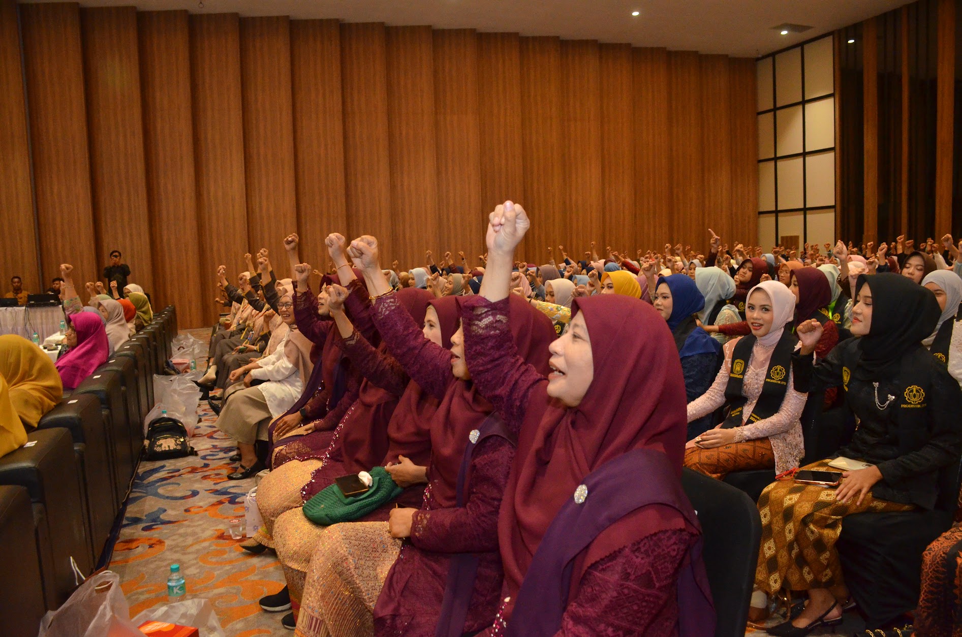 Semua peserta serempak mengikuti. Aula Graha Kartini Ballroom mendadak hening. Tangan-tangan menyentuh pundak dengan takzim, sebagai simbol dukungan dan persaudaraan.