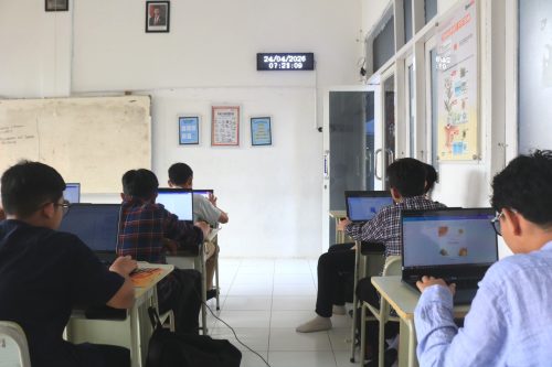 Dengan penuh konsentrasi, siswa DTCP Spemdalas merancang logo Milad ke-25 melalui perangkat digital saat kegiatan pra Milad berlangsung, Jumat (24/4/2026). (Tagar.co/Dheni Iga Pratiwi)