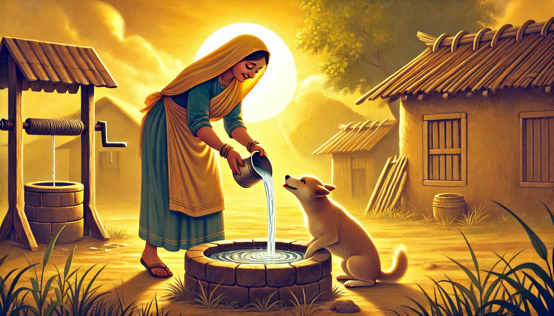 Dalam kisah lain, seorang lelaki yang sedang dalam perjalanan merasakan dahaga luar biasa. Ia turun ke sumur untuk minum, lalu naik kembali dengan tubuh yang lebih segar. Namun, pandangannya tertumbuk pada seekor anjing yang menjulurkan lidah, kehausan seperti yang baru saja ia alami.