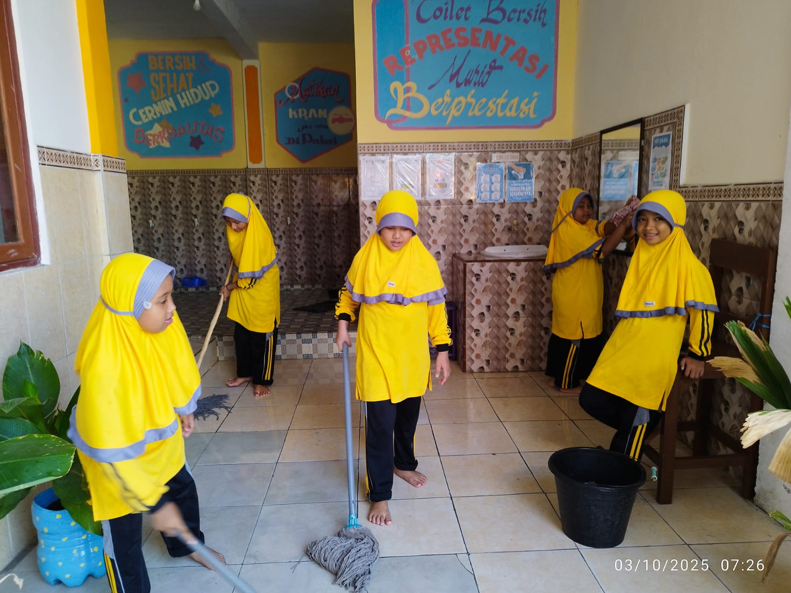 Tulisan motivatif berwarna cerah di dinding seperti “Bersih dan Sehat Cermin Hidup Berkualitas” serta “Toilet Bersih Representasi Murid Berprestasi” kian menguatkan pesan moral kegiatan ini: kebersihan bukan sekadar rutinitas, melainkan cermin karakter dan prestasi.