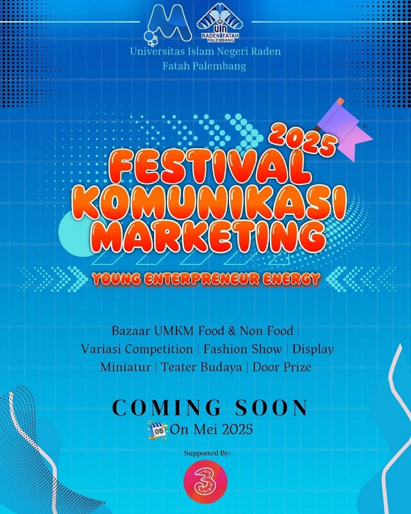 Tagar.co – Mahasiswa Program Studi Ilmu Komunikasi konsentrasi Marketing Communications UIN Raden Fatah Palembang akan menggelar Festival Komunikasi Marketing 2025, Senin-Sabtu (19-24/5/2025).