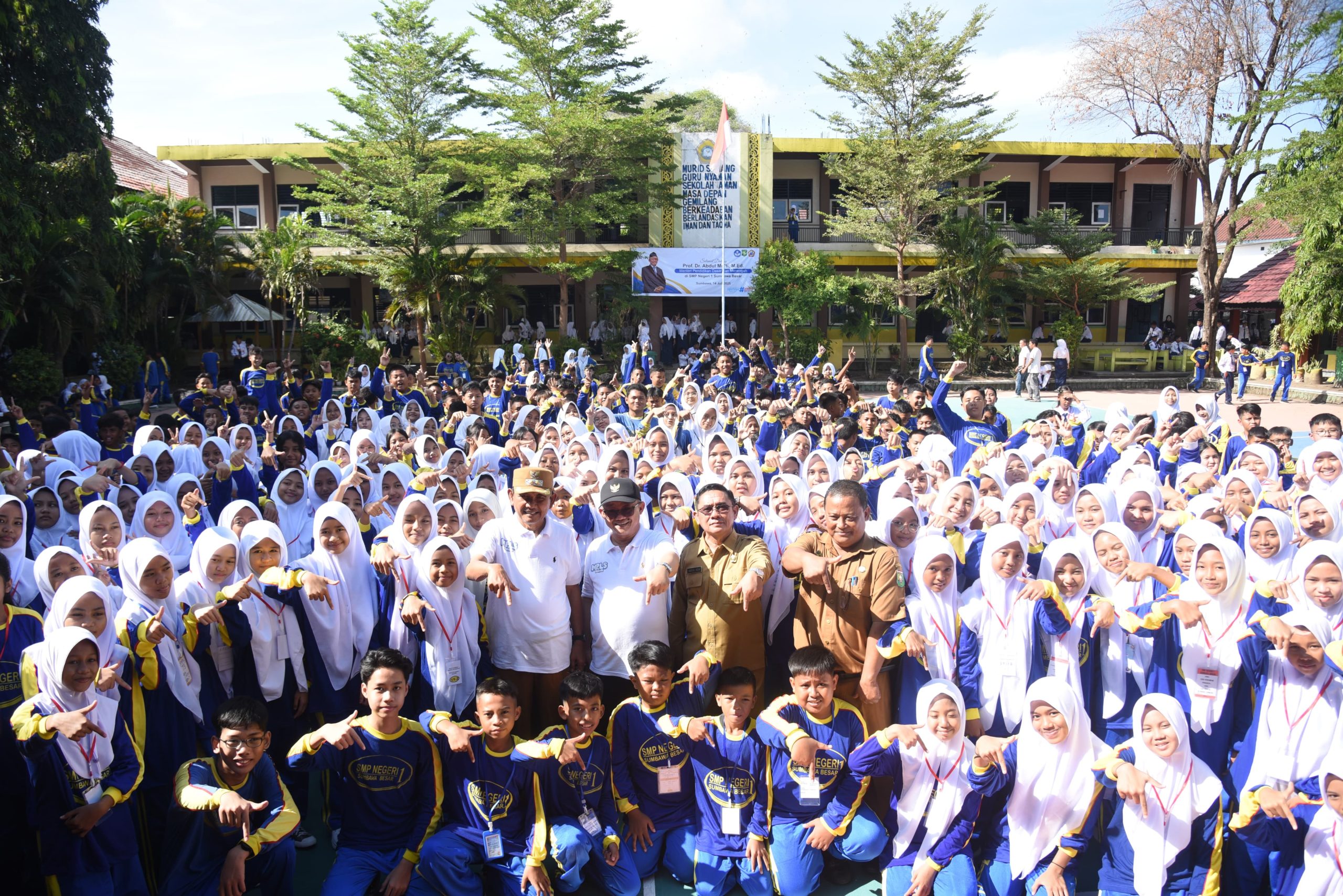 Di SD Negeri 16 Sumbawa, Nusa Tenggara Barat (NTB) Abdul Mu’ti tampil sebagai pembina upacara dalam pembukaan MPLS 2025 yang tahun ini mengusung konsep MPLS Ramah. Konsep ini menekankan pentingnya menciptakan suasana sekolah yang menyenangkan, aman, dan penuh cinta bagi anak-anak sejak hari pertama.
