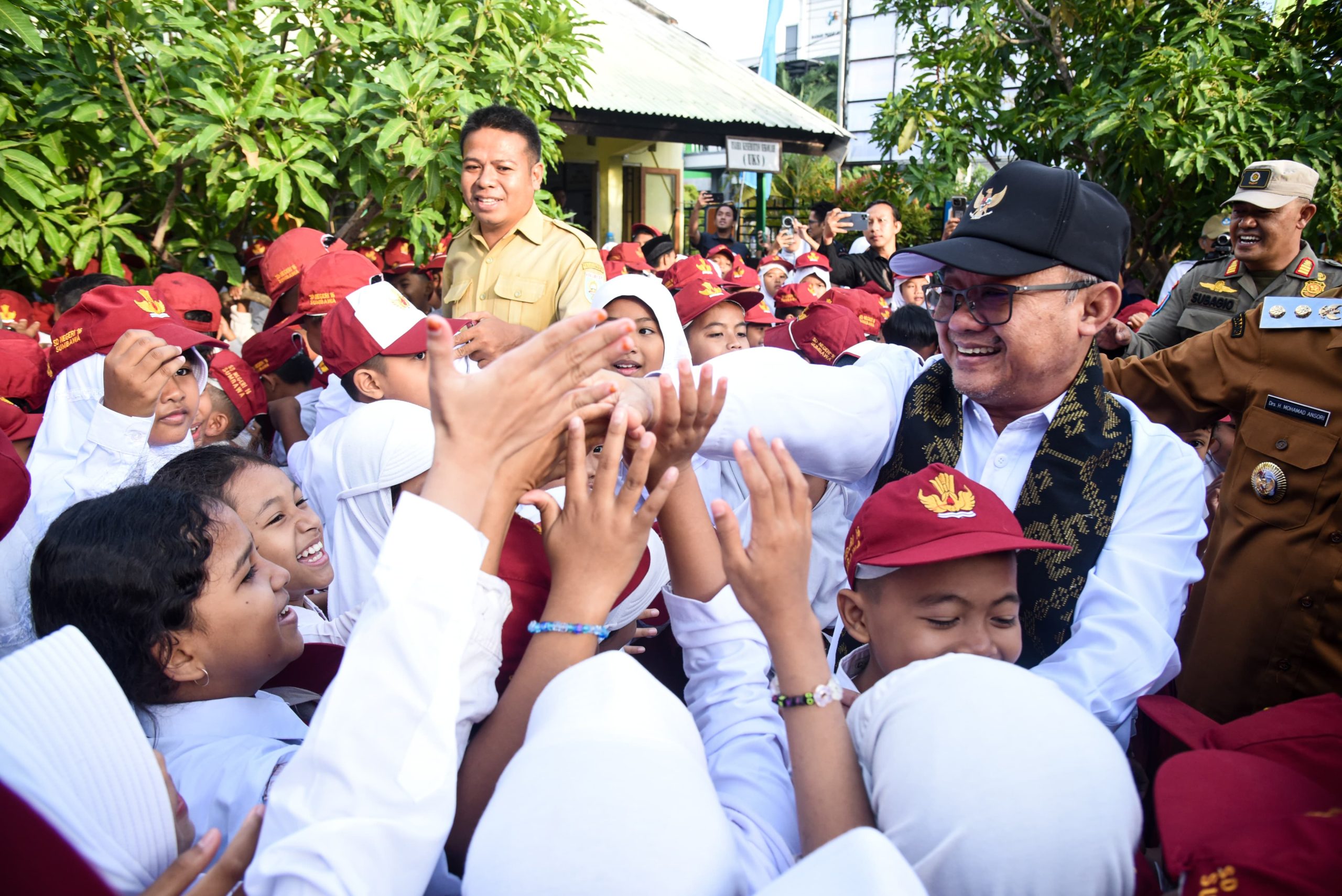 Mendikdasmen Abdul Mu’ti di Di SD Negeri 16 Sumbawa, NTB.