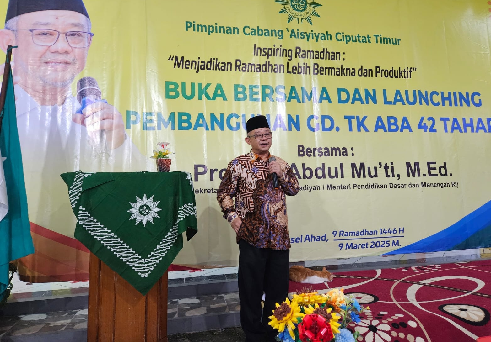 Tagar.co – Pimpinan Cabang Aisyiyah (PCA) Ciputat Timur menggelar Inspiring Ramadan dengan avara berbuka puasa bersama dan launching pembangunan gedung TK Aisyiyah 42 Ciputat tahap pertama. Acara bertema Menjadikan Ramadan Lebih Bermakna dan Produktif ini dihadiri oleh Sekretaris Umum Pimpinan Pusat (PP) Muhammadiyah yang sekaligus Menteri Pendidikan Dasar dan Menengah (Mendkdasmen), Prof. Dr. Abdul Mu’ti, M.Ed.