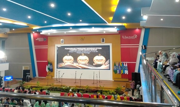 Sebagai gantinya, Dr. Anwar Haryono dari Universitas Muhammadiyah Gresik maju mewakili Lazismu Kabupaten Gresik menerima penghargaan, yang diserahkan langsung oleh Dr. Syamsudin, M.Ag, Ketua Dewan Pengawas Syariah (DPS) Lazismu Jatim.