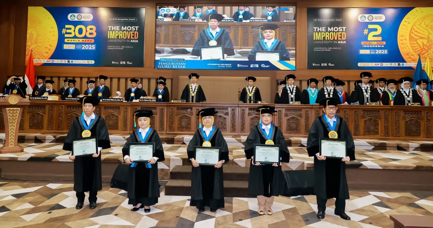 Dalam sidang terbuka tersebut, Unair mengukuhkan lima guru besar dari berbagai disiplin ilmu. Bukan hanya simbol prestasi akademik, pengukuhan ini menandai lahirnya terobosan-terobosan ilmiah yang siap menjawab tantangan zaman dan mendorong kemandirian bangsa.