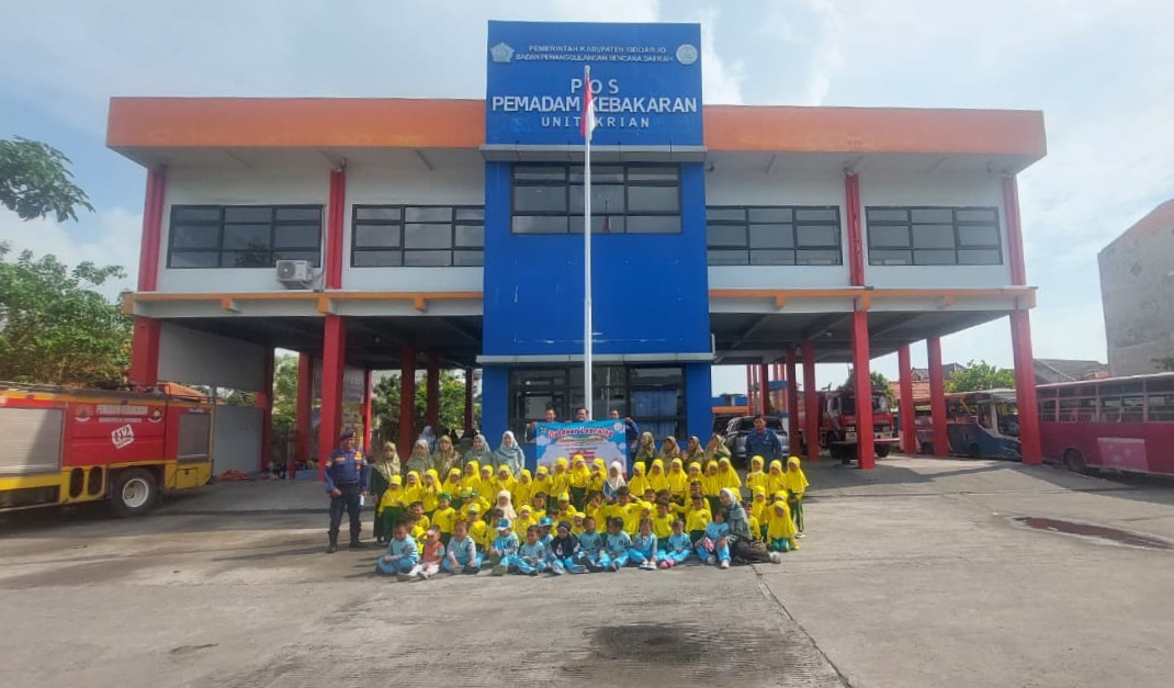 Tagar.co — Rasa penasaran mewarnai wajah anak-anak KB dan TK Islam Chairina, Desa Tempuran, , Kecamatan Tarik, Kabupaten Sidoarjo, pada Selasa, 28 Oktober 2025. Hari itu, mereka mengikuti kegiatan Outing Class bertema “Pengenalan Transportasi” dengan tujuan yang berbeda dari biasanya: Kantor Pemadam Kebakaran.