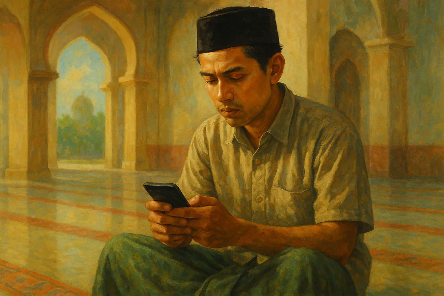 Di tengah zikir dan doa usai salat berjemaah, masih ada yang sibuk mengusap layar HP. Masjid kehilangan khusyuk, hati pun tak lagi sepenuhnya terikat pada rumah Allah.