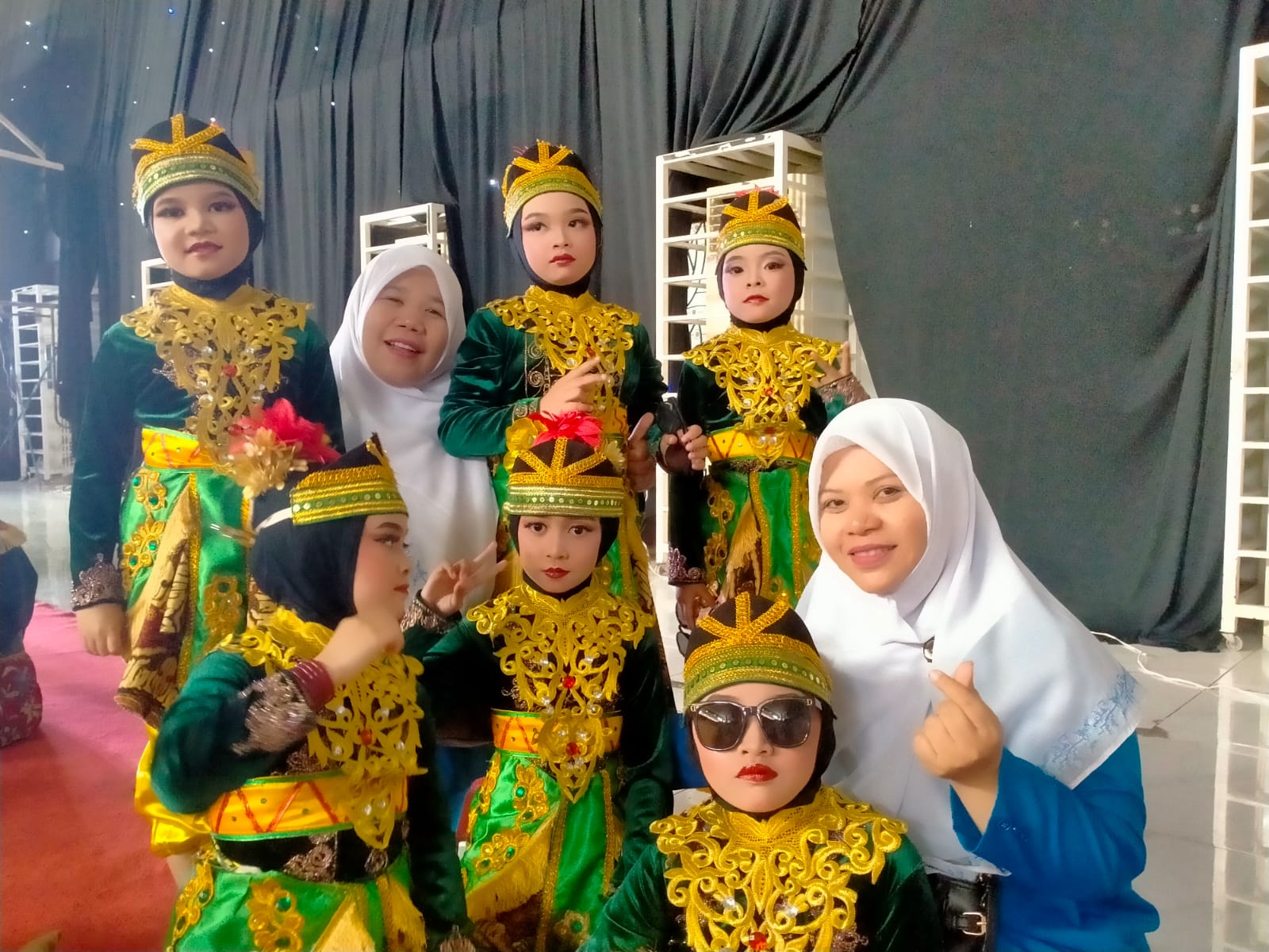 “Senang sekali, tadi aku pakai minyak telon dulu biar tidak masuk angin,” celetuk Mia, salah satu penari cilik, disambut tawa ringan di belakang panggung.