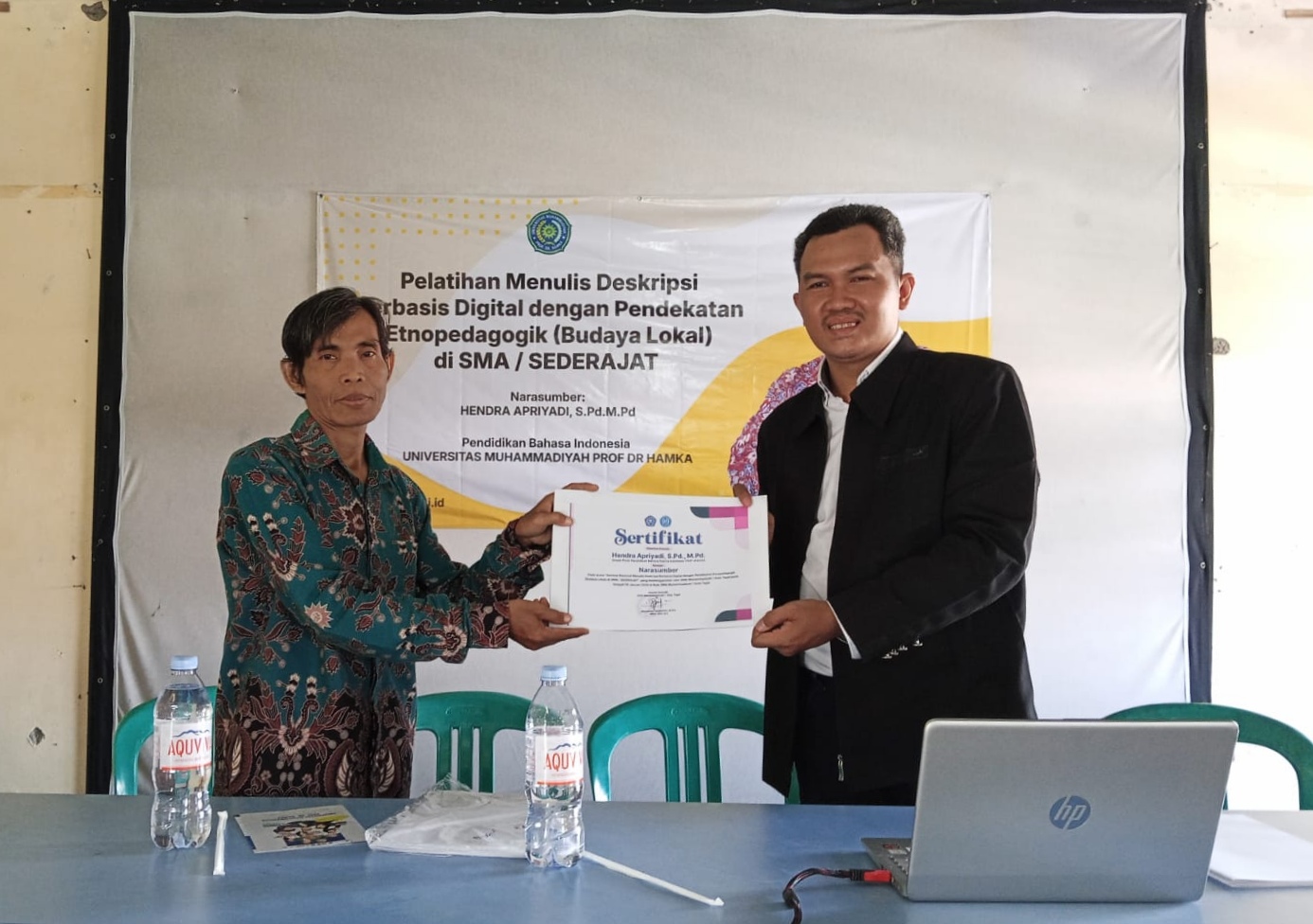 Puluhan siswa SMA Muhammadiyah 1 Tegal mengikuti pelatihan menulis deskripsi berbasis digital yang dipandu Hendra Apriyadi, mahasiswa S3 Pendidikan Bahasa Indonesia Uhamka, sebagai upaya memperkuat literasi, karakter, dan kecintaan terhadap budaya lokal.
