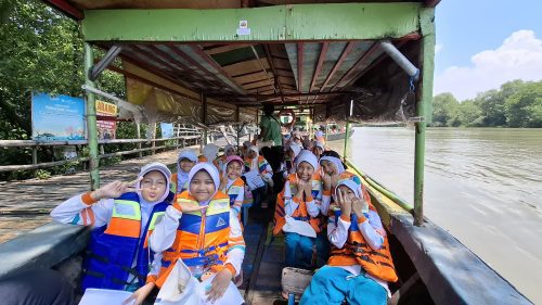 “Anak-anak, ekowisata mangrove adalah area yang baru bagi kita. Oleh karena itu, masing-masing dari kalian bertanggung jawab menjaga keselamatan diri. Mari kita patuhi segala tata tertib dan menjaga sikap selama di sana,” pesannya kepada para siswa.