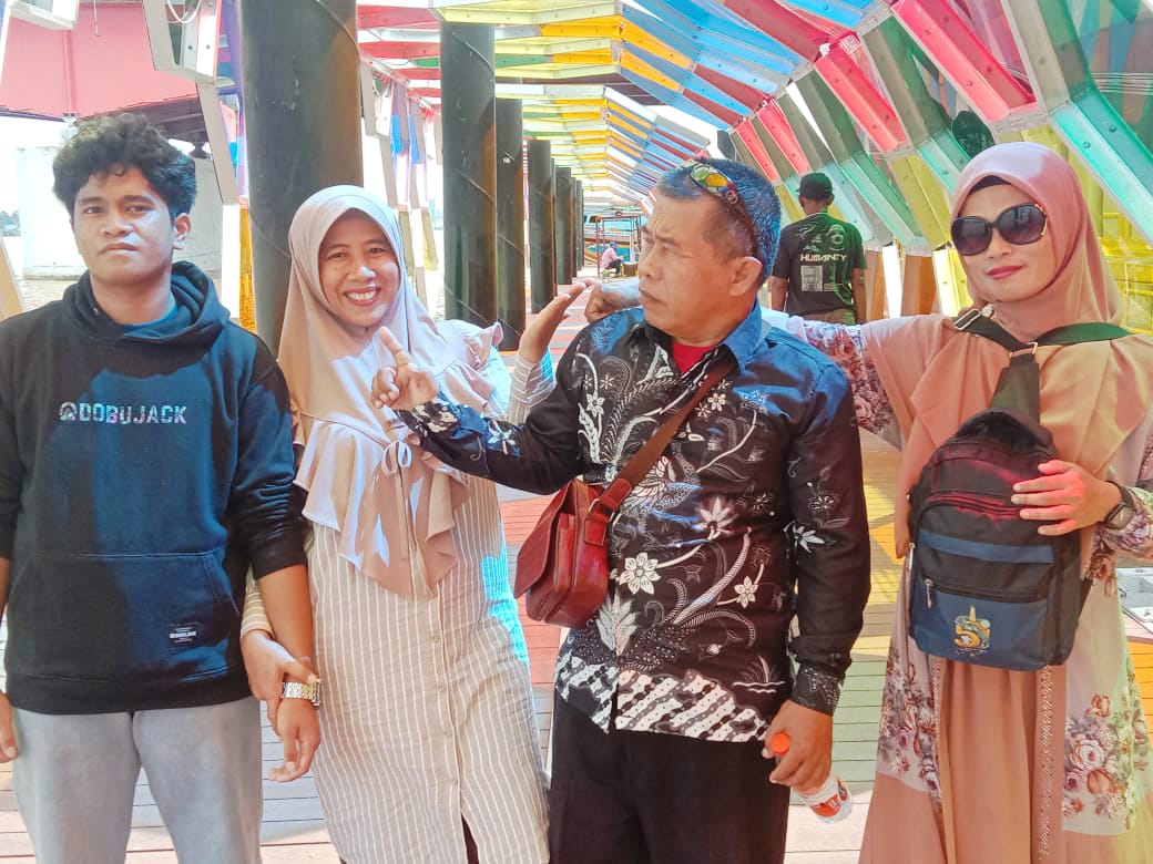 Dari kanan: Penulis bersama suami Kemas Asrozi dan adik Nyimas Rodiyah beserta keponakan Muhammad Aslam Ibrahim saat berada di salah satu jembatan warna sungai Musi Palembang, Selasa (23/12/2025). (Tagar.co/Kusnadi)