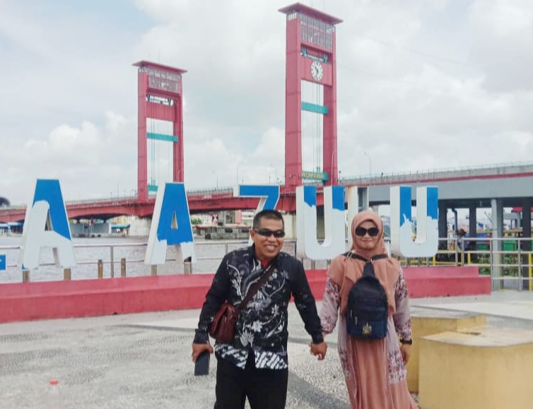 Penulis bersama suami Kemas Asrozi saat berada di area Plaza 7 Ulu Palembang, Selasa (23/12/2025). (Tagar.co/Nyimas Rodiyah)
