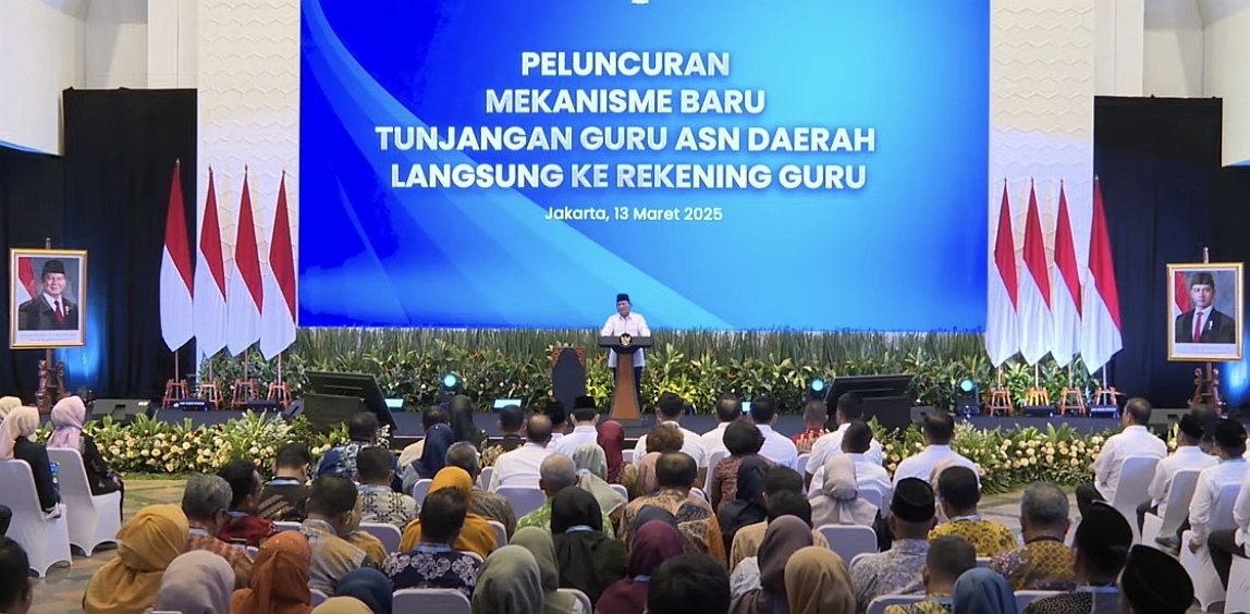 “Saya menyambut baik inisiatif, upaya peluncuran, upaya mekanisme baru dengan mengirim tunjangan guru ASN daerah langsung ke rekening guru. Inilah upaya untuk mengurangi tidak efisiensi,” ujar Presiden Prabowo dalam sambutannya, yang juga bisa disimak melalui YouTube Sekretariat Negara,