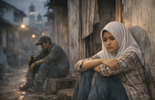 Pada malam-malam tertentu, aku mendengar Ayah berbicara sendiri. Bukan kepada manusia—kepada Tuhan. Suaranya parau, penuh rintih. Ia menyesali hidupnya, bukan karena takut neraka, tetapi karena merasa telah menyeretku ke dunia yang keras. Aku pura-pura tidur, tetapi setiap katanya menusuk.