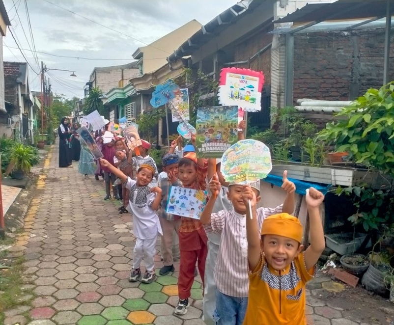 Keceriaan para siswa KB-TK IT Handayani pada kegiatan Tarhib Ramadan, Menganti, Gresik, Jawa Timur, Jum’at, 13 Februari 2026 (Tagar.co/Nadhirotul Mawaddah).