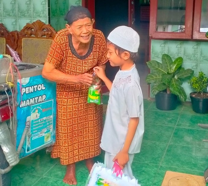 Paket itu berisi kebutuhan dapur seperti garam, kecap, dan sabun cuci piring. Meski sederhana, warga menyambutnya dengan senyum tulus. Bagi anak-anak, momen tersebut menjadi pelajaran nyata tentang arti berbagi dan kepedulian sosial sejak usia dini.