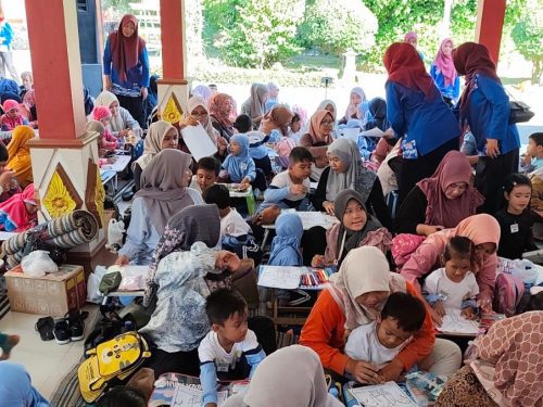 Bertempat di samping masjid, anak-anak warga setempat dan buah hati kader Nasyiah yang mendampingi bunda mereka berkumpul beralaskan terpal biru. Berbagai kegiatan seru seperti mewarnai, menggambar, bermain bola, dan mendengar pembacaan nyaring buku cerita mengisi pagi mereka. Kali ini, kegiatan lebih istimewa dengan hadirnya hibah sepaket buku Halo Balita 25 seri.