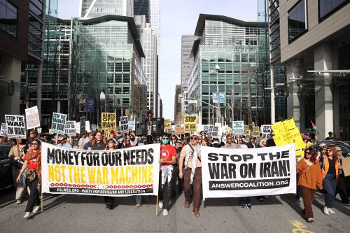 Demonstrasi menentang serangan AS–Israel terhadap Iran di San Francisco. (Foto Al-Jazeerah English @AJEnglish)