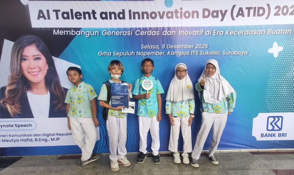 Sekolah Kreatif SD Muhammadiyah 16 Surabaya memeriahkan AI Talent and Innovation Day 2025, menampilkan siswa berbakat yang bersinar lewat lomba 1000 Duta AI.