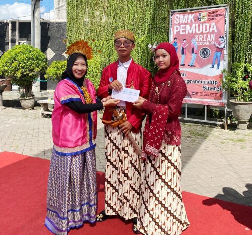 Kreativitas dan kepercayaan diri siswa SMP Meka terpancar lewat parade busana nusantara yang meriah di halaman SMK Pemuda Krian.