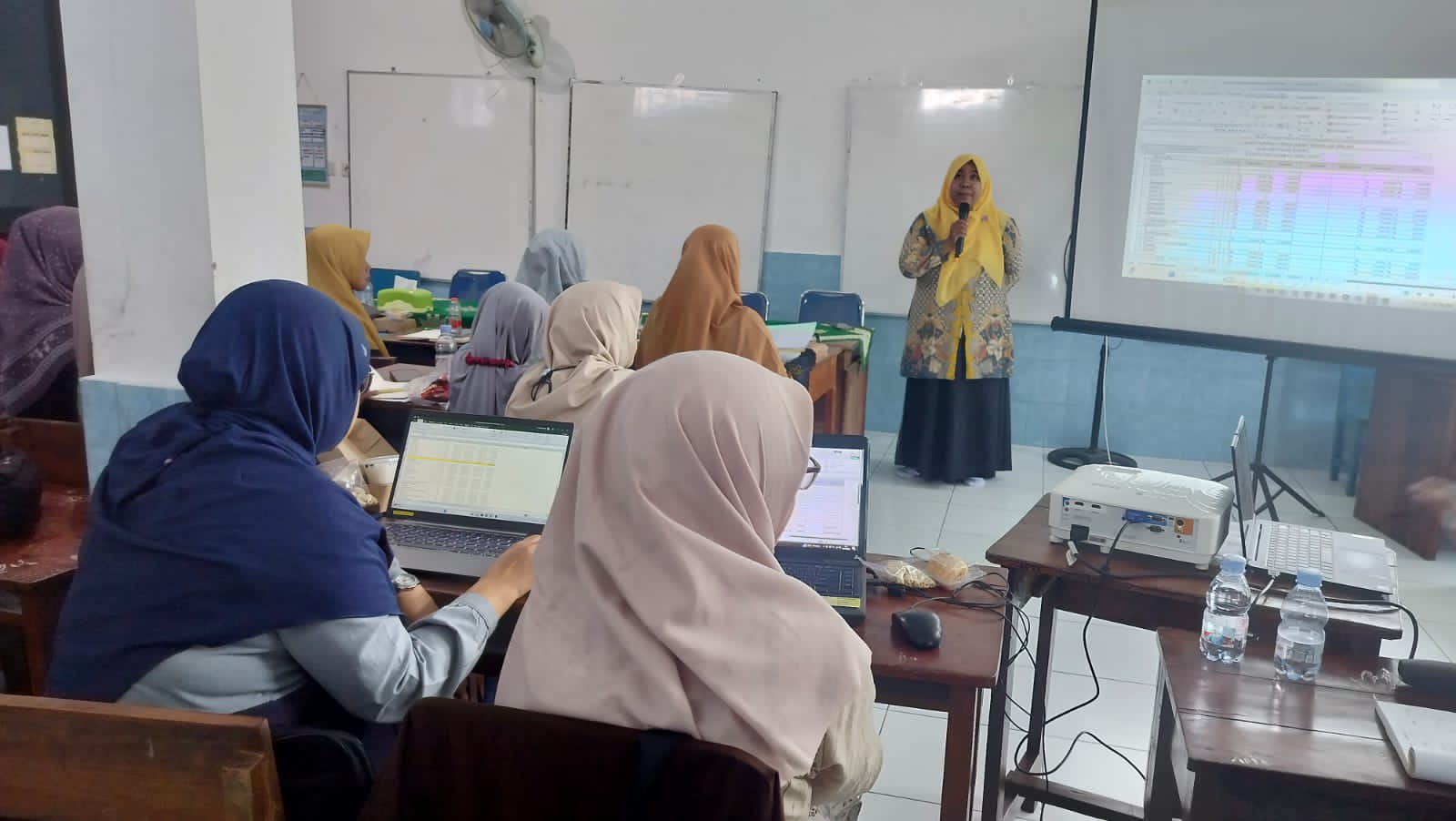 Kepala SLB Aisyiyah Krian, Ariana Agustin, S.Pd., memaparkan rencana kegiatan dan anggaran dalam Presentasi RKAS KB/TK dan SLB Aisyiyah, yang digelar PCA Krian dan Majelis Paud Dikdasmen, Ahad (12/10/2025). (Tagar.co/Aniwati)