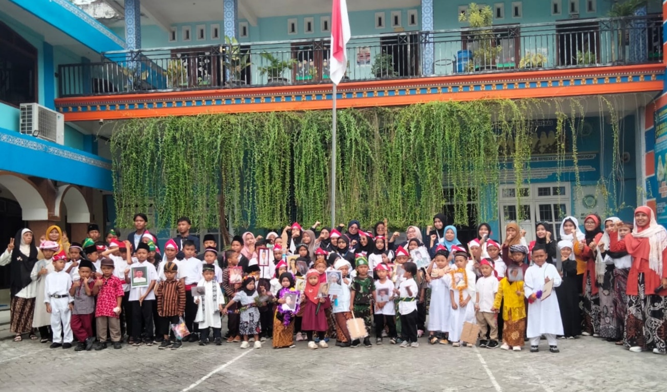 Setiap siswa membawa foto pahlawan yang mereka perankan, menambah kesan edukatif sekaligus seru.