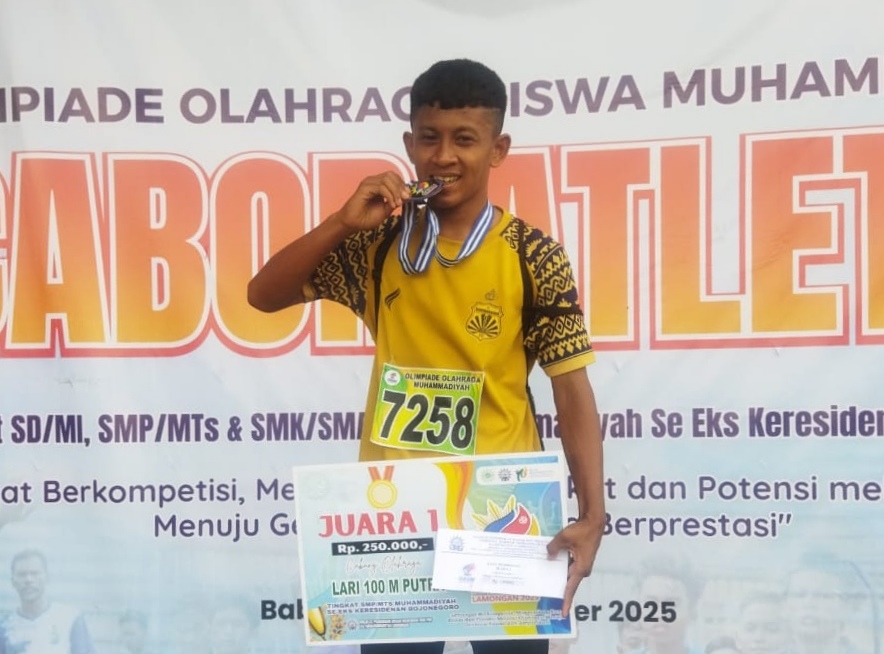 Tagar.co – Dua siswa MTs Muhammadiyah 3 (Muga) Sumberrejo, Bojonegoro, Jawa Timur, sukses membawa pulang dua medali emas pada Olimpiade Olahraga Siswa Muhammadiyah (O2SM) se-eks Keresidenan Bojonegoro 2025 di Babat, Lamongan, (22/11/2025).