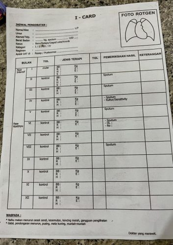 Alat Bantu Monitoring Terapi TBC: Kartu Isa/Isa Card/I-Card. (Tagar.co/Mohamad Isa)