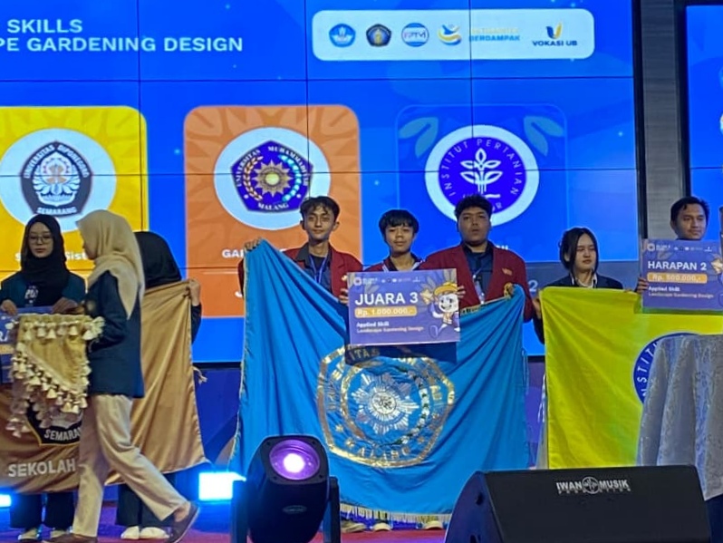 Dari 1.400 tim peserta yang datang dari 28 perguruan tinggi vokasi se-Indonesia, mereka sukses meraih juara 3 dalam kategori Applied Skill: Landscape Gardening.