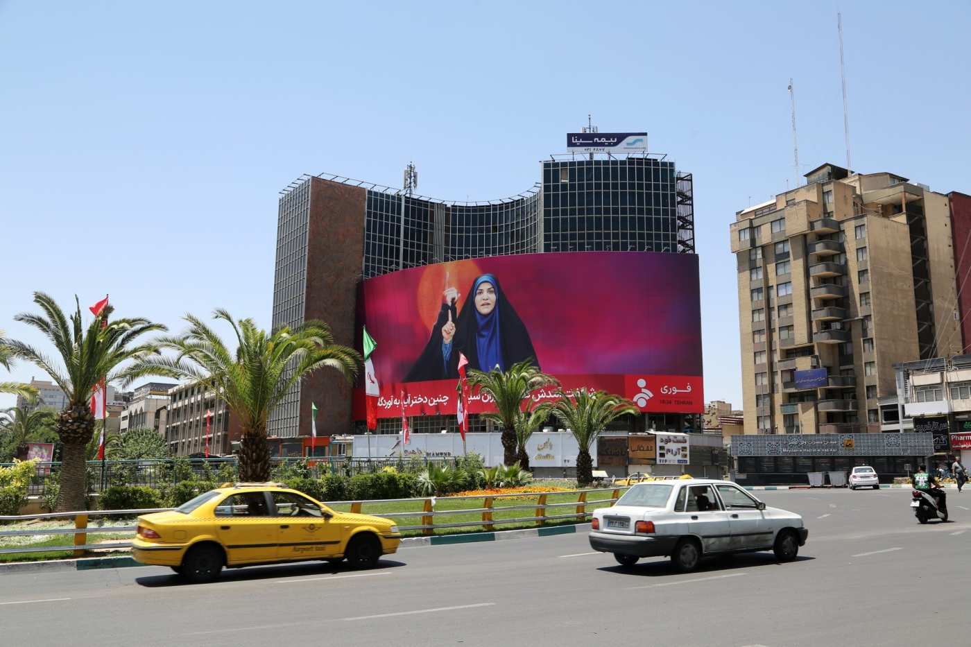 Sebuah spanduk bergambar Sahar Emami di Lapangan Valiasr, Teheran, pada Selasa. © Fatemeh Bahrami/Anadolu/Getty Images via ft.com)